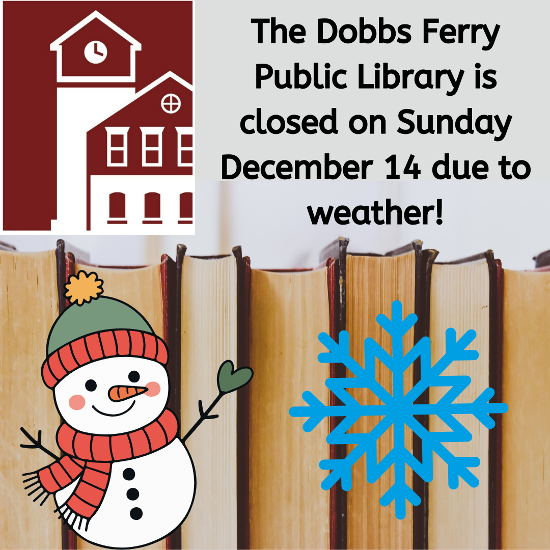 The Dobbs Ferry Library will be closed today, Sunday December 14, due to the snow. We’ll see you tomorrow!