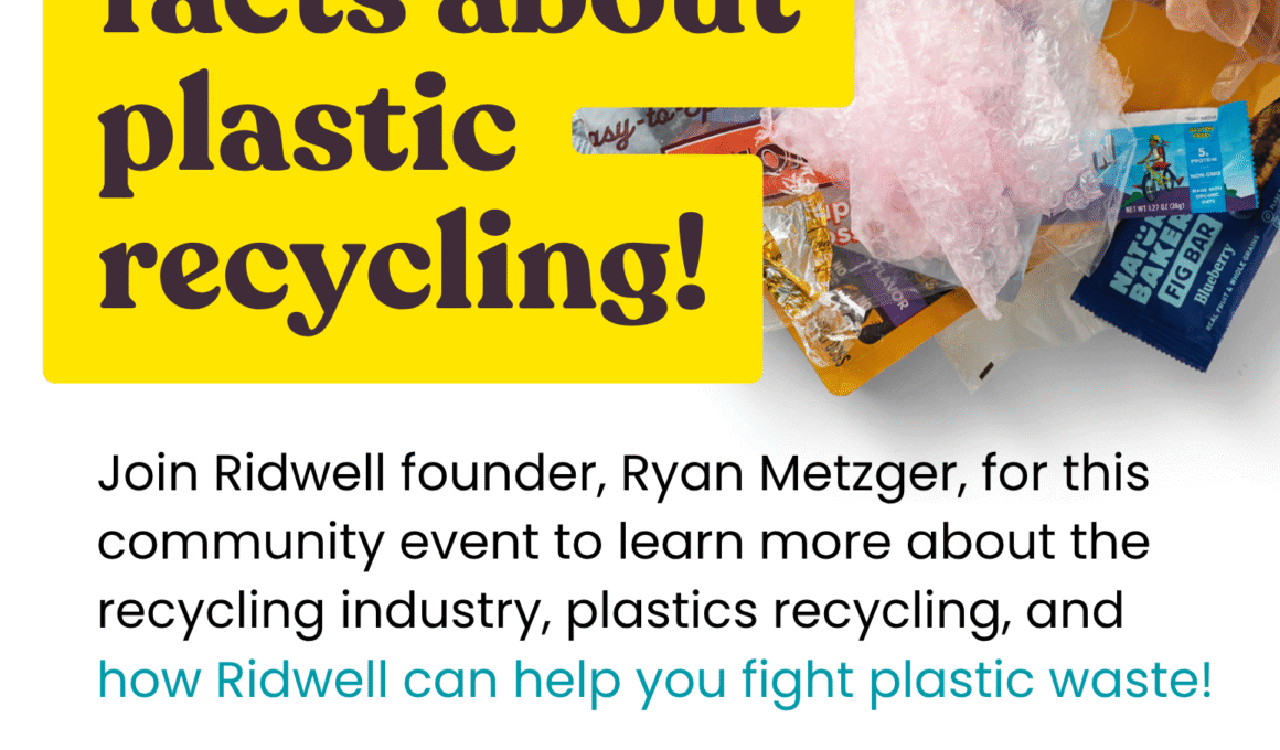 Learn the Facts About Plastic Recycling Wednesday, November 19 1:00 pm - 2:00 pm Join Ridwell founder Ryan Metzger for this community event to learn more about the recycling industry, plastics recycling, and how Ridwell can help you fight plastic waste! RSVP here!