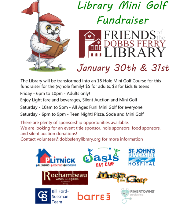 There are plenty of sponsorship opportunities available. We are looking for an event title sponsor, hole sponsors, food sponsors, and silent auction donations! Contact volunteer@dobbsferrylibrary.org for more information.