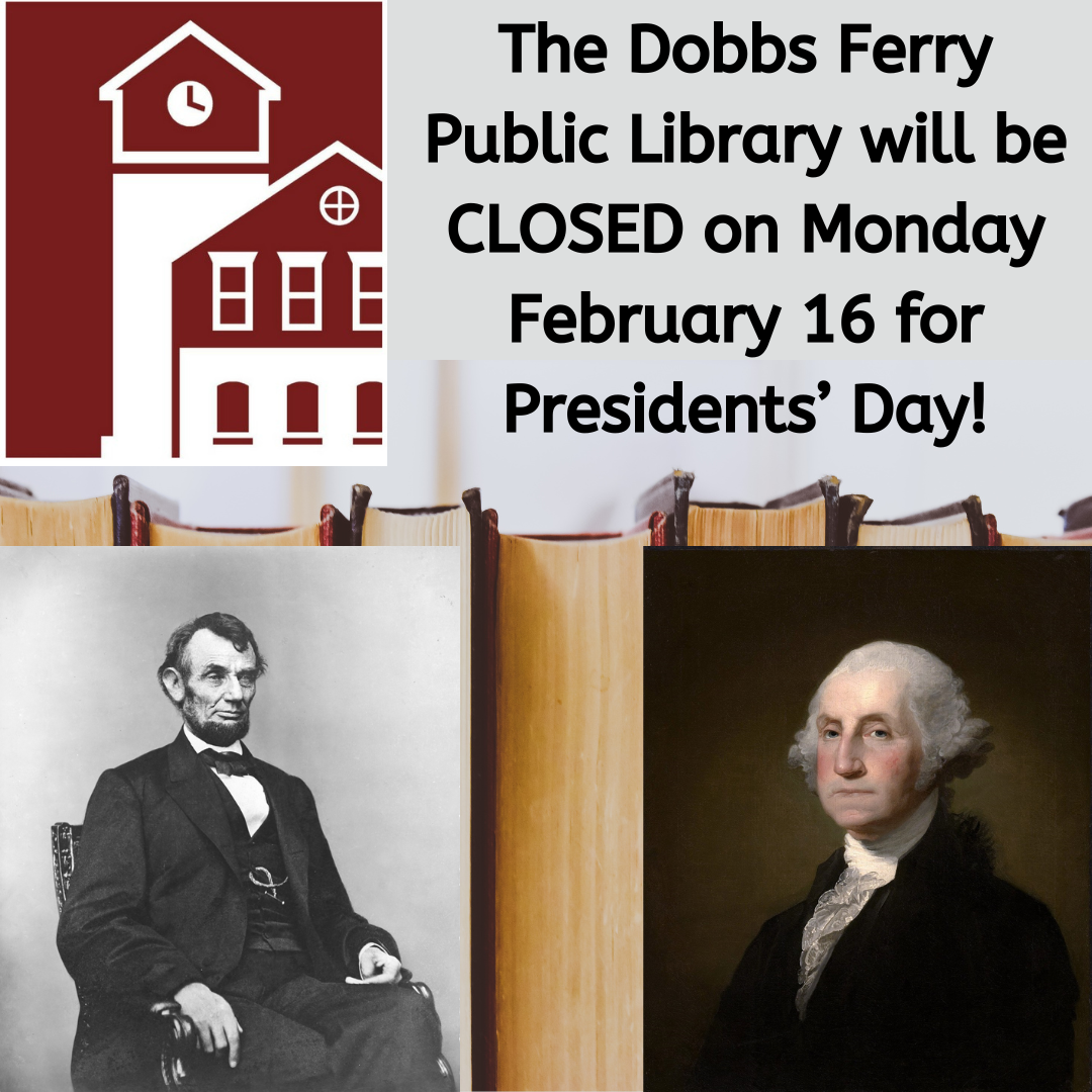 Presidents’ Day – Library Building Closed Monday, February 16 All Day The Dobbs Ferry Library will be closed all day on Monday February 16th for Presidents’ Day!