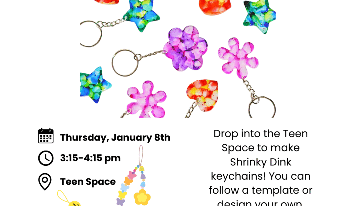 Drop into the Teen Space to make Shrinky Dink keychains!  You can follow a template or design your own.