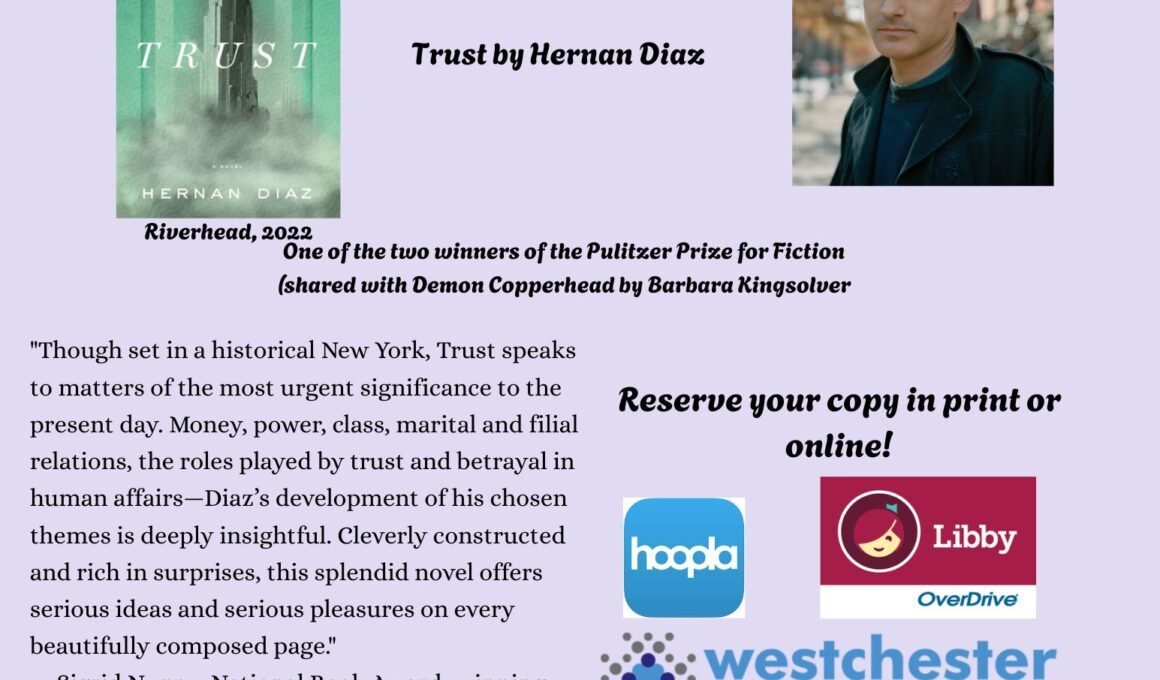 This month we’re reading Trust by Hernan Diaz. Get the book at the Library!