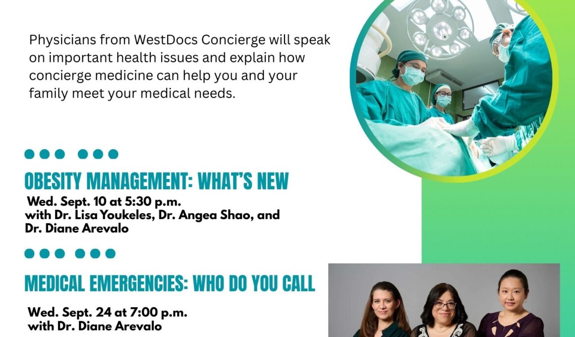 Physicians from WestDocs Concierge will speak on important health issues and explain how concierge medicine can help you and your family meet your medical needs.